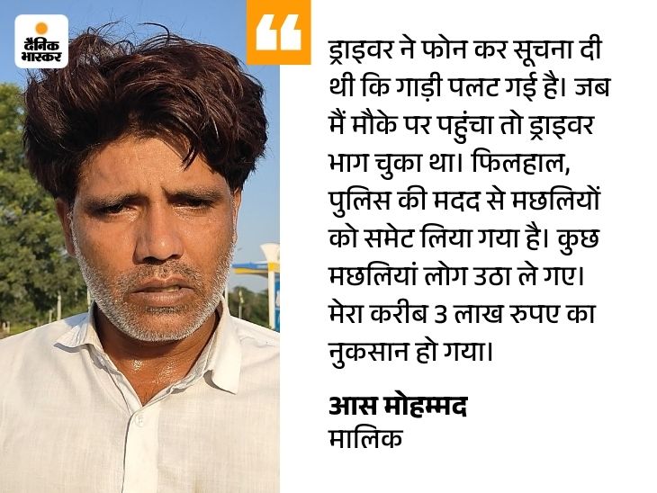 Owner of fish said- police supported As Mohammed, the owner of the fish, who reached the spot from Neemrana village, told that all the fish have died. The pickup was loaded with Rohu, Mangur, Pankaj and Roop Chanda species. Most of the fish died and some fish took away.