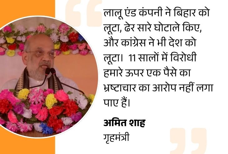 - Lalu’s family rained on scams: Lalu & Company looted Bihar, carried a lot of scams, and the Congress also looted the country. For the last 11 years, there is a government of Narendra Modi in the country, and our opponents have not been able to accuse us of corruption of even a single penny.