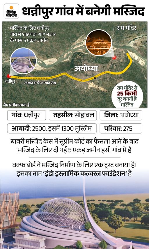 While giving the verdict on the Babri Masjid case, the Supreme Court had said, both the temple and the mosque should be built soon. Both sides can start work by making a trust for this. To build the mosque, the court asked the Sunni Central Waqf Board to give land in Ayodhya itself. After this the mosque committee was formed. The building design was created. The photo of the new mosque continued to be released, but a new stone was not kept in Dhannipur.