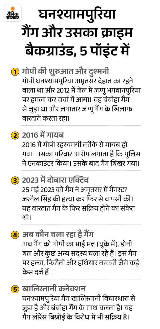 Jaggu had got someone close to Bambiha gang murdered On the evening of 26 May 2025, a sensational firing took place outside the petrol pump located on Ghuman village and Shri Hargobindpur Road in Batala. In which Gurpreet Singh Gora alias Gora Bariyar was killed and Billa Mandiala was injured. Jaggu Bhagwanpuriya gang had taken responsibility for this case.