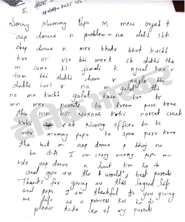 Suicide note written in a child’s copy Meanwhile, a suicide note has come in front of the police. Which is written on the page of the school copy. Haryanvi is tone, although it is written in Roman (English). It is being told that this page was found from Manisha. SP Sumit Kumar says that it is being investigated right now. Family members also knew about this note. Writers are being mixed. (Dainik Bhaskar does not confirm this suicide note Manisha’s being.)