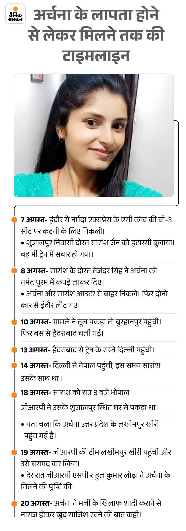 Summary Jogchandra Archana was brought to Shujalpur from Itarsi and then left Indore. Constable Ram Tomar had booked the railway ticket of Archana.