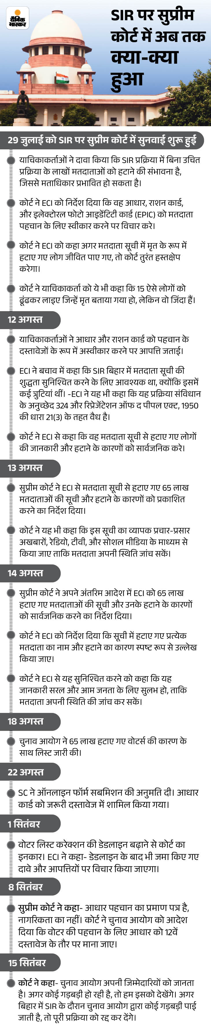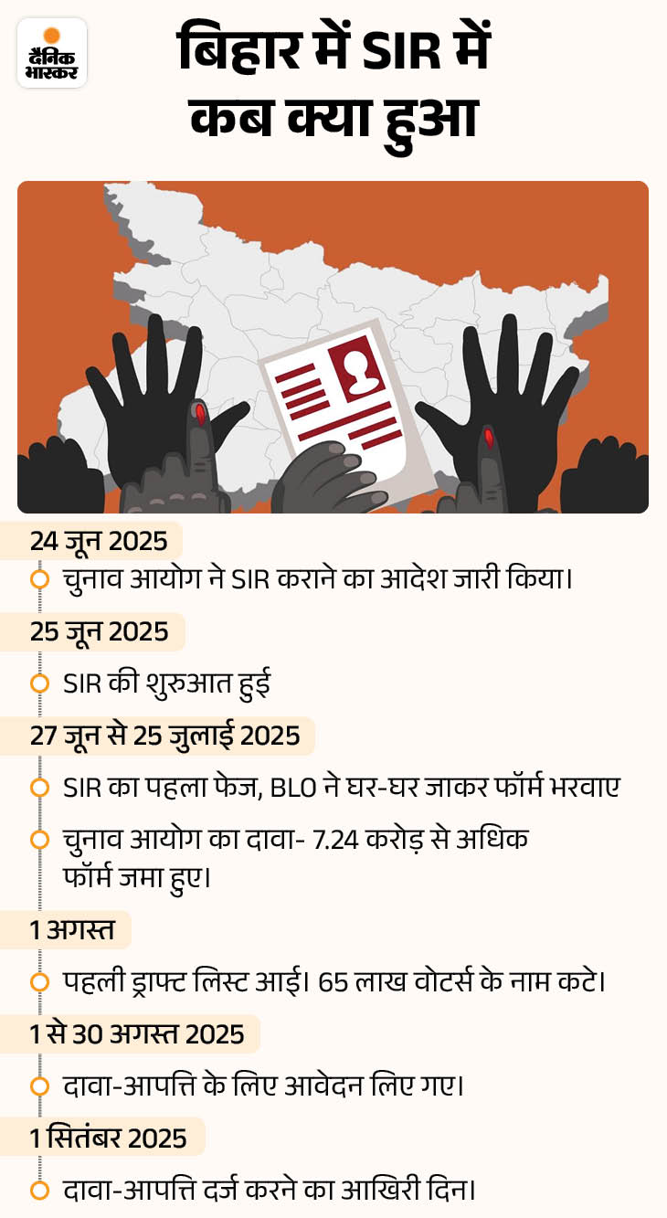 According to EC, the SIR process was started from June 2025. In this, 7.89 crore registered voters were filled again. After this, the list was released on 1 August, in which the names of 65 lakh voters were cut.