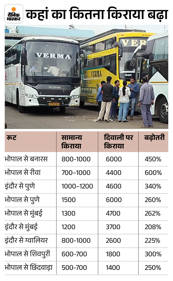 Case 1: My friends canceled their plans to go home Common travelers are troubled by this kind of robbery during festivals. Sandeep Nema of Sagar, who works in Bhopal, says, ‘I often travel by bus, but as soon as Diwali comes, the fare skyrockets. Many of my colleagues from Banaras and Gorakhpur who work with me have canceled their plans to go home after seeing the increased fare.