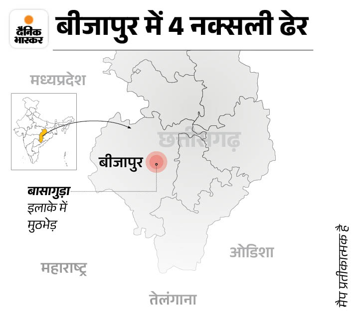 Bijapur SP Jitendra Yadav had told that the team of DRG (District Reserve Guard) started a search operation in the southwest region on the basis of intelligence input. On the evening of 26 July, during the search in the forest, the Naxalites started firing, in response to which the security forces took the front.