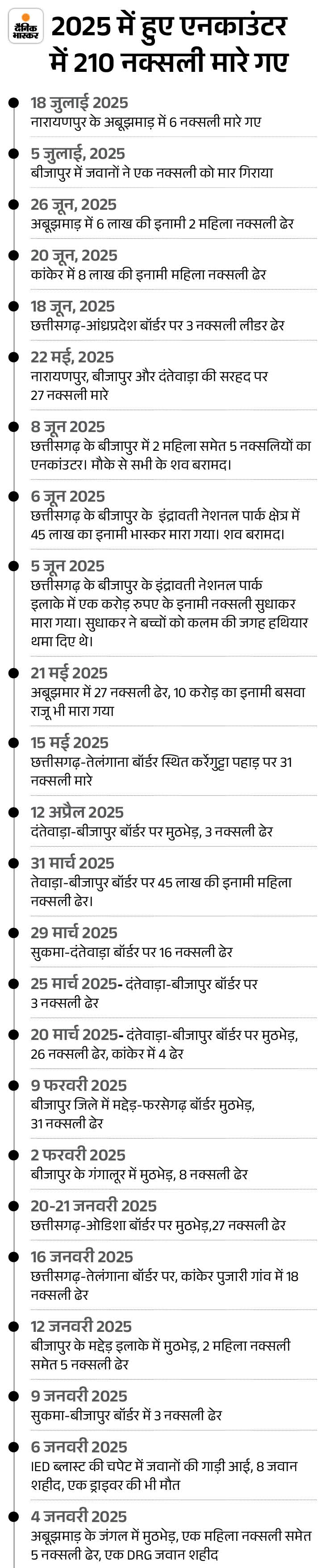 Bastar Range Inspector General of Police Sundararaj P. had said that the decisive lead we made in 2024 is being strengthened further in 2025. From January 2024 to July 2025, security forces have killed 425 hardcore Naxalites. This is a proof of our forces commitment, planned strategy and public cooperation.