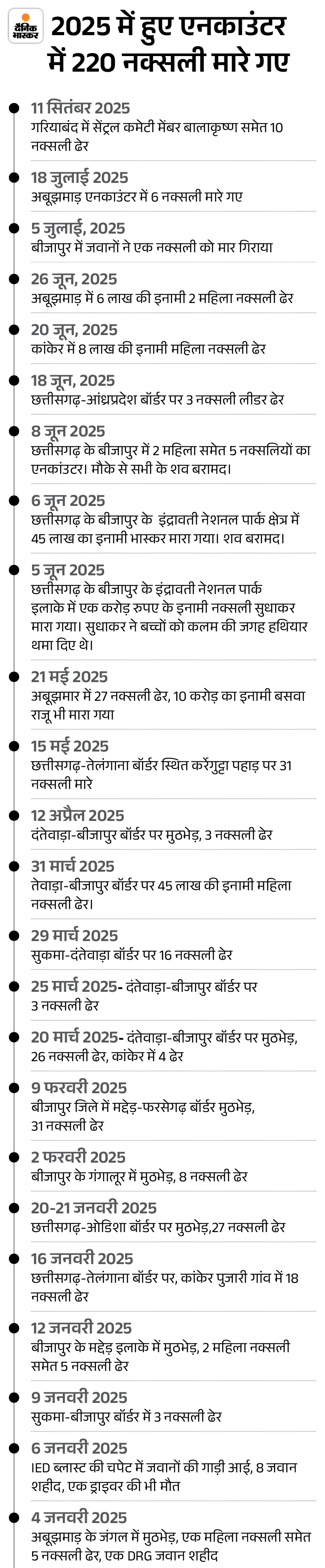 - Earlier, 27 Naxalites were killed in an encounter on May 21. It also had a prize of 1.5 crore Baswa Raju.