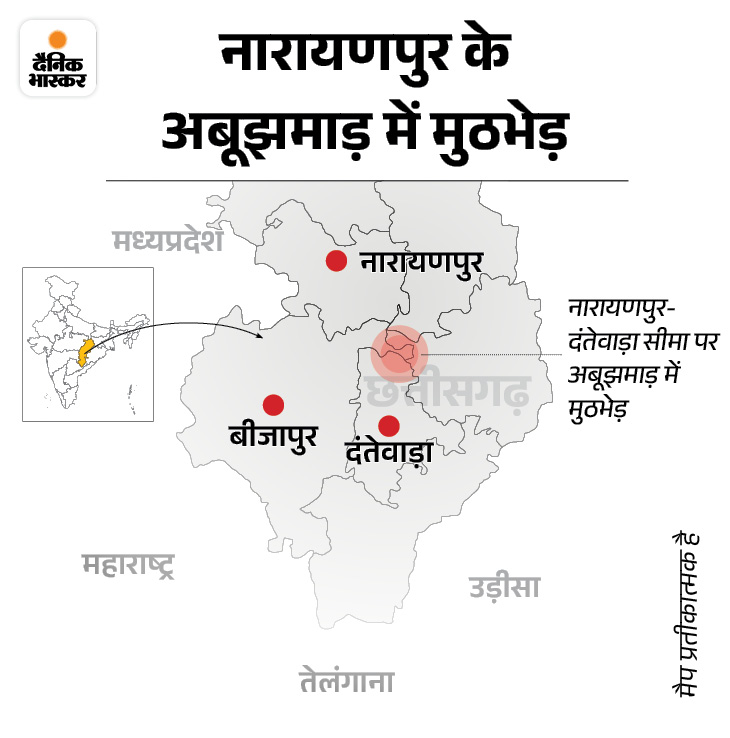 According to the information, the District Reserve Guard (DRG) team of Dantewada and Narayanpur on behalf of the security forces set out on joint operations. Meanwhile, Naxalites attacked. In retaliation, the soldiers killed the Naxalites. The encounter has been confirmed by Dantewada SP Gaurav Rai.