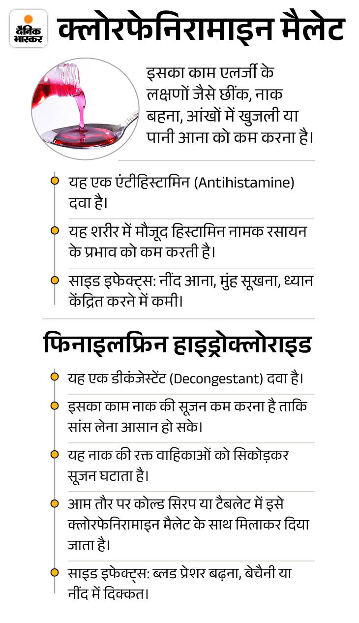 The Madhya Pradesh government has instructed to take special precautions about the use of chemicals like chlorpheniramine maleate and phenylephrine HCL.
