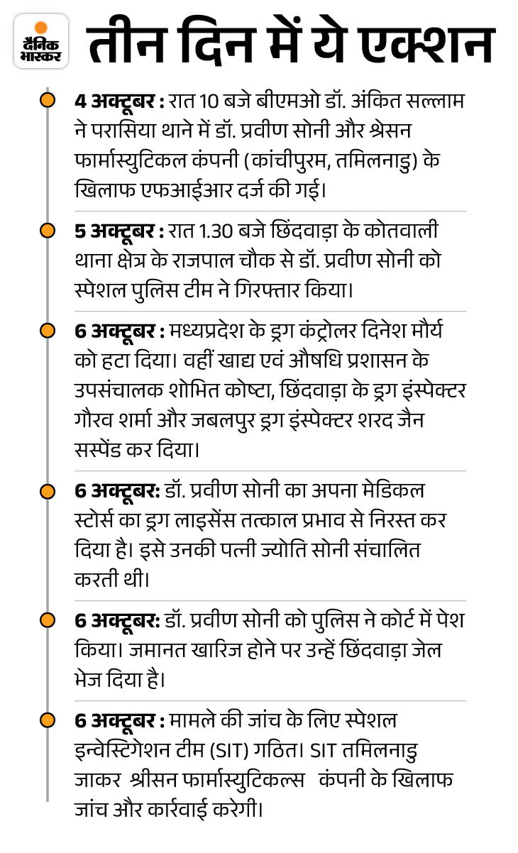 The government has formed a Special Investigation Team (SIT) to investigate the case. Drug inspectors of Jabalpur, Chhindwara, Balaghat and Mandla districts are included.