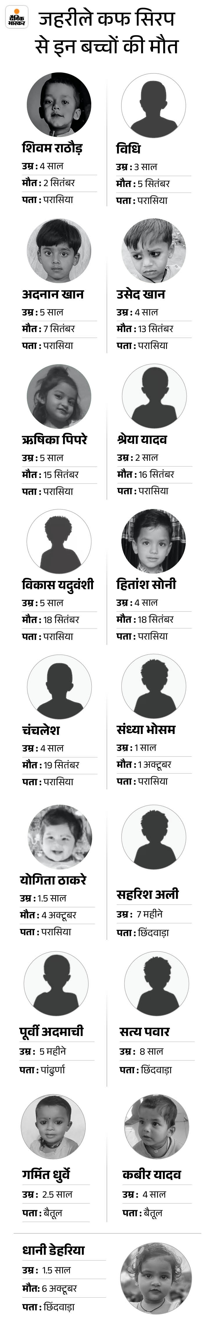 Naveen Dehria, who lives in Junapani village of Tamia block, says Dhani was also given a cold syrup. With this death, the figure of dead children in Chhindwara district has now reached 15 while the total number has increased to 17.