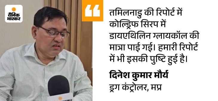 At the same time, the lock was hanging in the drug laboratory of MP. When Bhaskar asked drug controller Dinesh Kumar Maurya, he said that the sample could not be investigated on the day of Dussehra. He also said that the order in which the sample was found was being investigated. On asking how the Tamil Nadu government first conducted an investigation, he said that there is a manufacturing unit, so he had informed him.