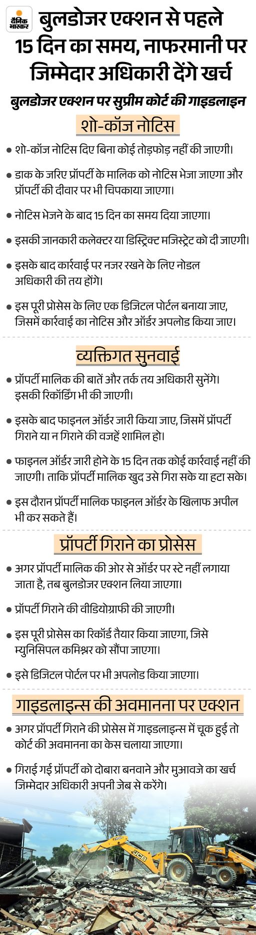 The Supreme Court ruled on bulldozer action in November 2024. The court had said that officers cannot become judges. They should not decide who is the guilty. The bench had also said that if the construction dropped without a 15 -day notice, it would have to be rebuilt at the expense of the officer. The court also gave 15 guidelines.