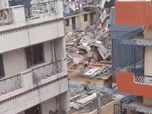 Several pictures of the scene have been revealed. Dozens of these houses were transformed into debris. It is being told that people were sleeping in their homes at the time of the accident. According to police sources, there is a possibility of explosion due to the cylinder leaks.