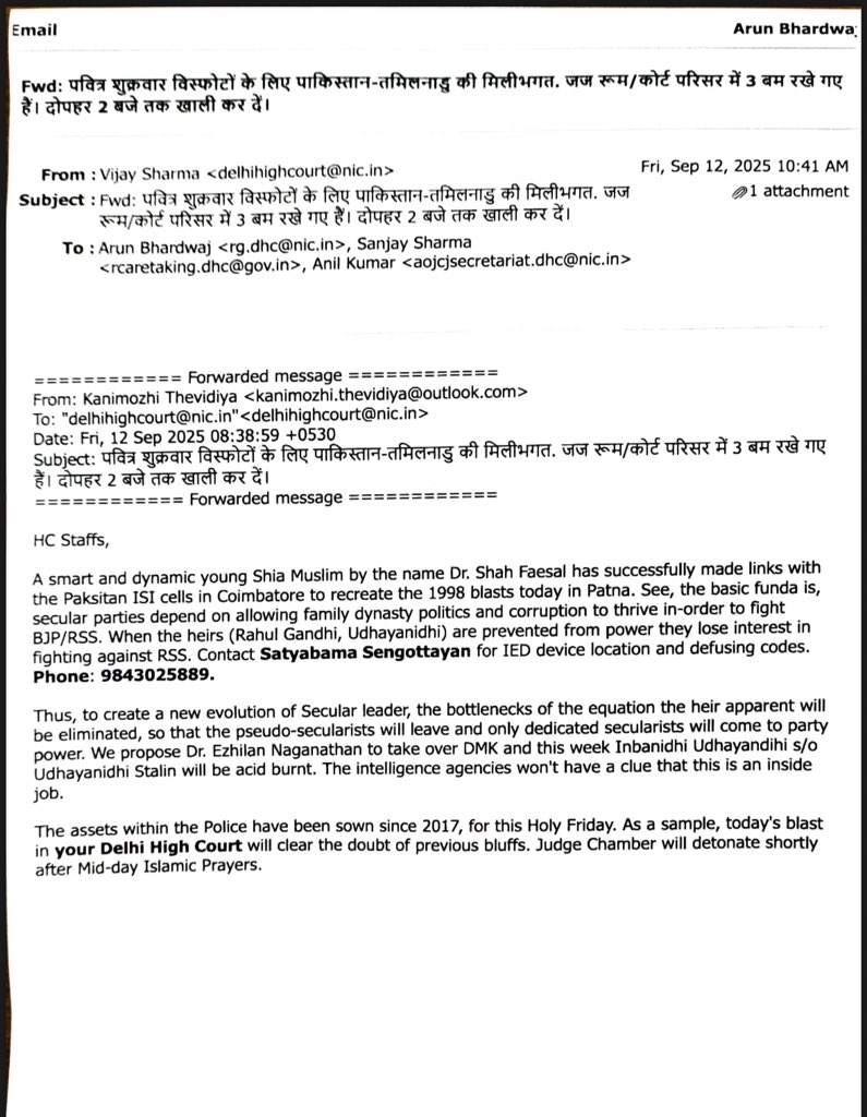A 3 bomb threatening email has been sent to the Delhi High Court on Friday morning. After this there is a stir here. The entire campus is being evacuated. After receiving the news of the mail, Delhi Police and Bomb Squad have reached the spot. The court campus is being searched.
