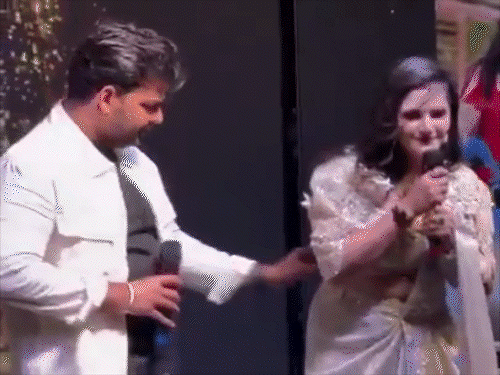 Fourth- Controversy over touching the waist of Haryanvi actress