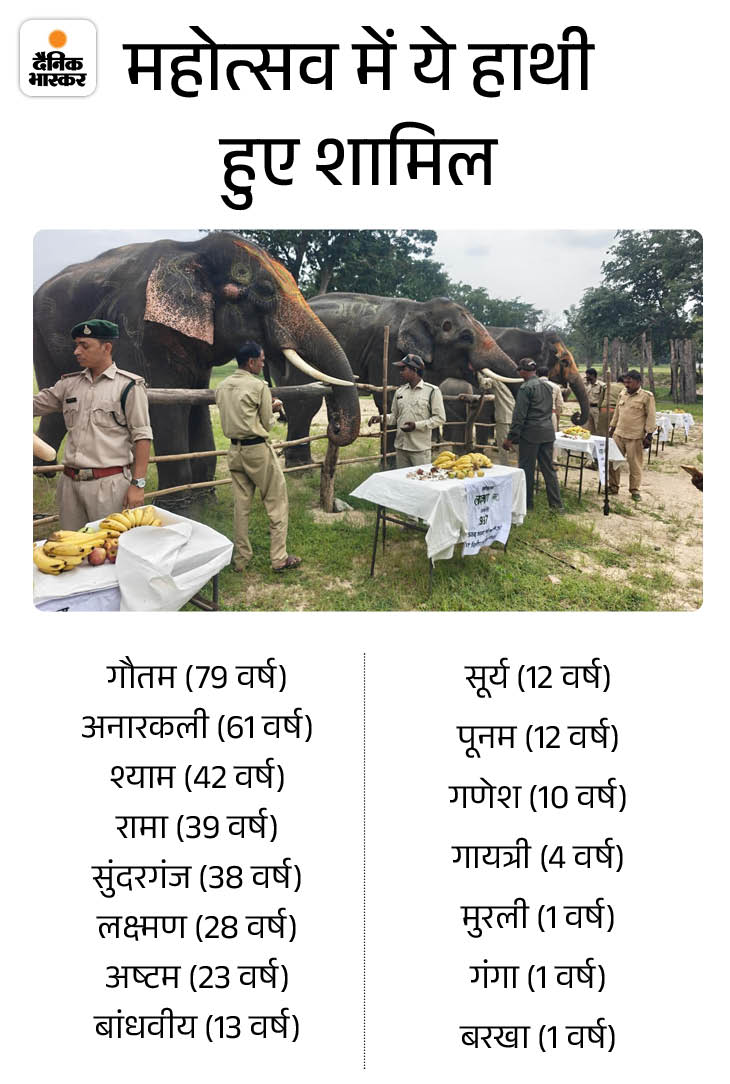 Anupam Sahay, field director of Bandhavgarh Tiger Reserve, says that elephants are left in the forest for variance after a meal in the afternoon. A team of veterinarians will be examined by checking their health and will be sent to the lab with blood samples. Bandhavgarh also has three cubs with 12 elephants. The oldest elephant in the camp Gautam is 79 years old, while Ganga is one year old.