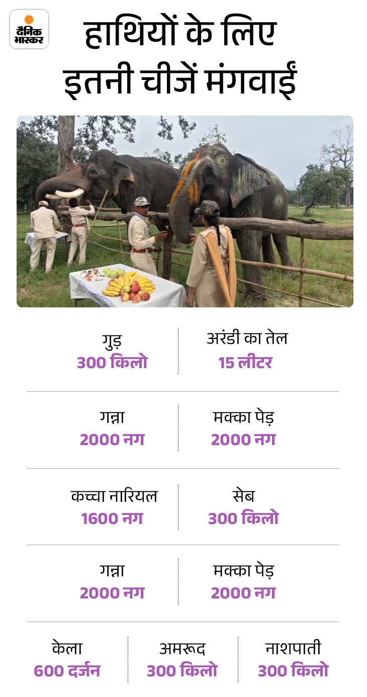 According to Field Direct, elephants are given diet according to age. The female elephant, who has given birth to children, has special diet. They are also given vitamins. By the way, elephants are given 10 kg of rotis with jaggery. For coldness in the head of elephants, castor oil and neem oil are applied in the legs. If there is some injury in the claws, it provides relief.