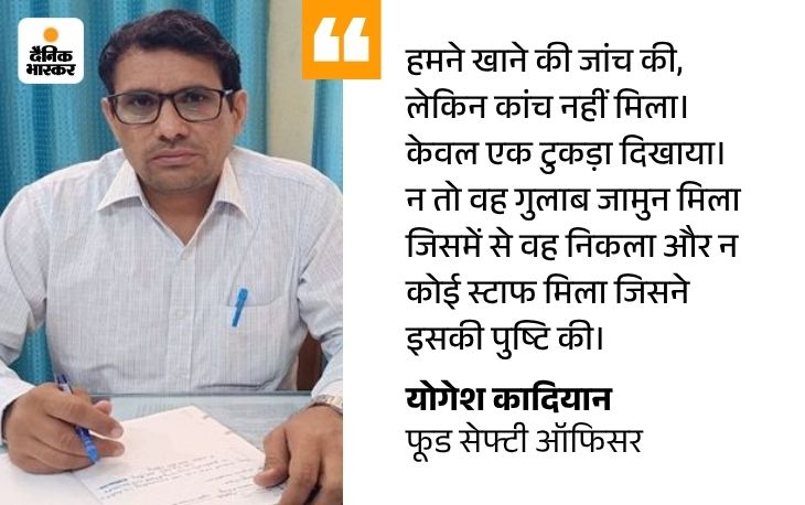 As soon as a piece of glass came out of Gulab Jamun, staff workers took a photo of it. After this, the officers complained.