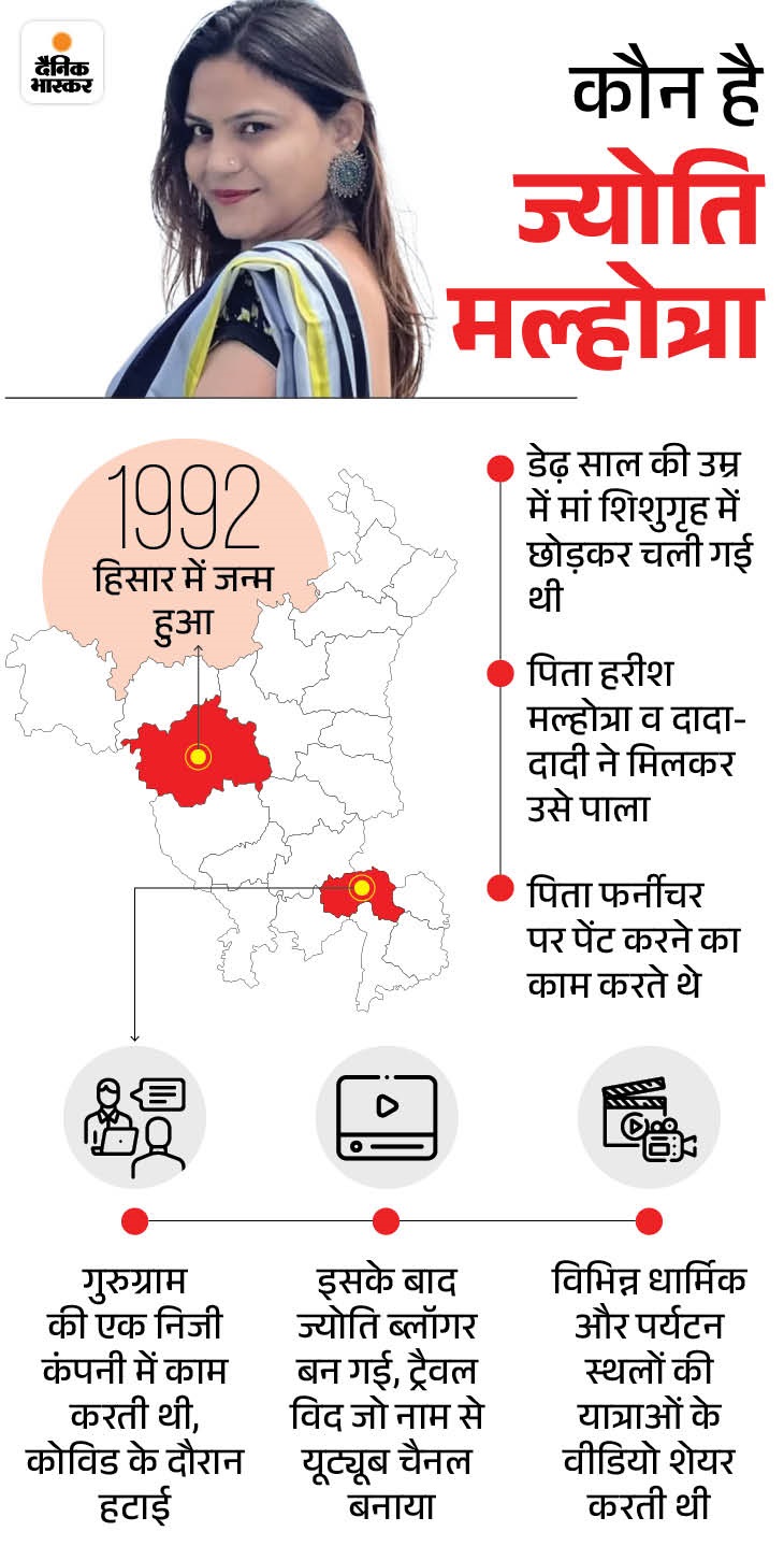 Jyoti came under suspicion due to visit to Pakistan and China Travel blogger Jyoti Malhotra came into the eyes of security agencies when she went to Pakistan and then China within 2 months in 2024 last year. She went to Pakistan on 17 April 2024 as per the date of the video uploaded on YouTube on YouTube.