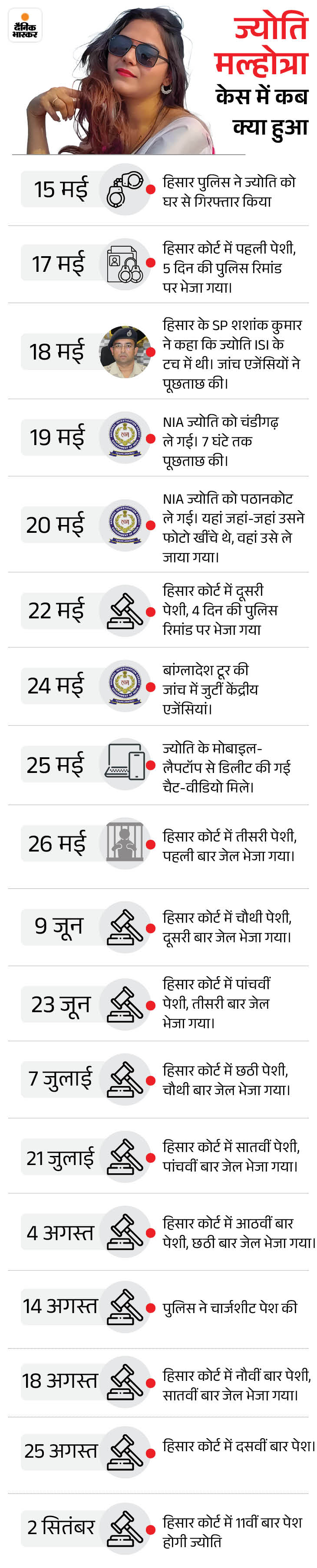 Jyoti was arrested on 15 May Please tell that Hisar police arrested Jyoti Malhotra on May 15 on suspicion of espionage for Pakistan. He has serious allegations such as espionage, endangered national security and sharing confidential information under sections 3, 4 and 5 of the Indian Code (BNS) and Section 3, 4 and 5 of the Official Privacy Act, 1923.