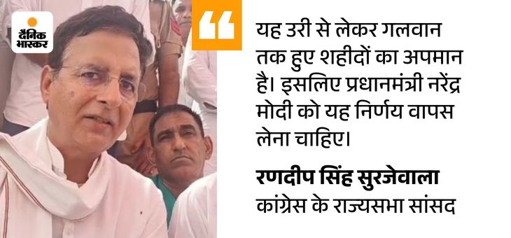 Surjewala said- this proof of BJP’s bogus In Kaithal on Sunday, Congress Rajya Sabha MP Randeep Singh Surjewala said- “If the Prime Minister was heard by the wife of martyr Shubham Dwivedi, he would immediately cancel the cricket match between India and Pakistan. How can both Indians sacrifice and the pride of cricket should run together?