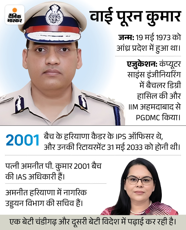 - Transfer to Police Training College on 29 September: Puran Kumar was appointed IG of Rohtak Range in April this year. On 29 September, he was transferred to the IG post at Sunaria Police Training College (PTC), Rohtak. On 2 October, he left DGP with a holiday. He was to go on duty on Wednesday.