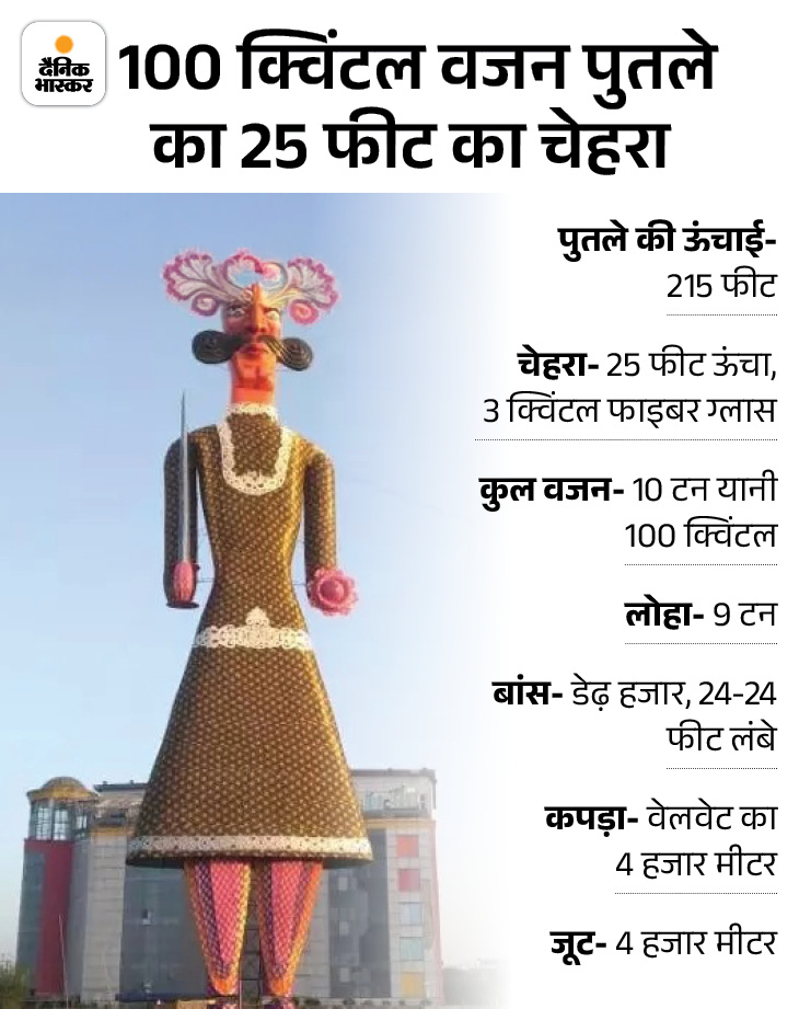 - For the first time 10 heads, Rajasthani style face-shock Till now, Tejendra Chauhan used to make one -headed Ravana, this time Dashanan is putting 10 heads. The big face will be 25 feet high. The remaining 9 faces will be 3 x 6 feet. Earlier, 8 to 10 feet long mustache used to go outward, this time the mustache would be dense, long and upwards, ie handbare style. These mustache are of Rajputi style, which reflect the strength and valor.