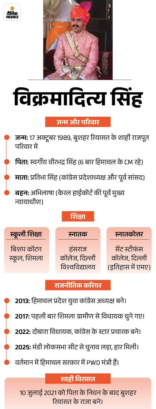 Vikramaditya Singh has been elected MLA from Shimla Rural Assembly for the second time and is the son of a six -time CM Virbhadra Singh. He is the Minister of Public Works and Urban Development in the current Congress government.