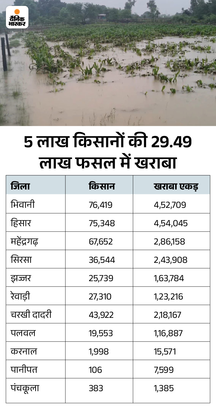 In Haryana, farmers sitting in the hope of getting compensation for crops spoiled due to flood-rain or waterlogging may suffer a setback. The government had opened an e-safety portal to register details of bad crops. On which till September 15, 5 lakh farmers stood in 29.49 lakh acres