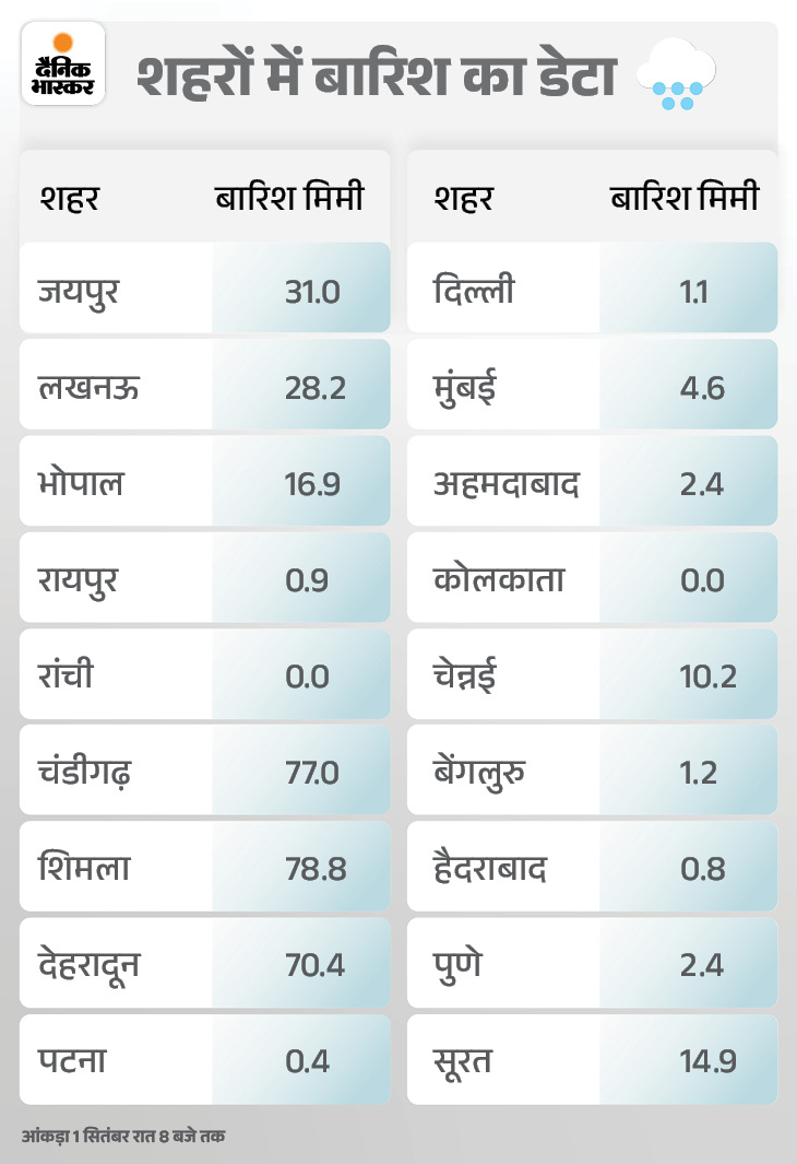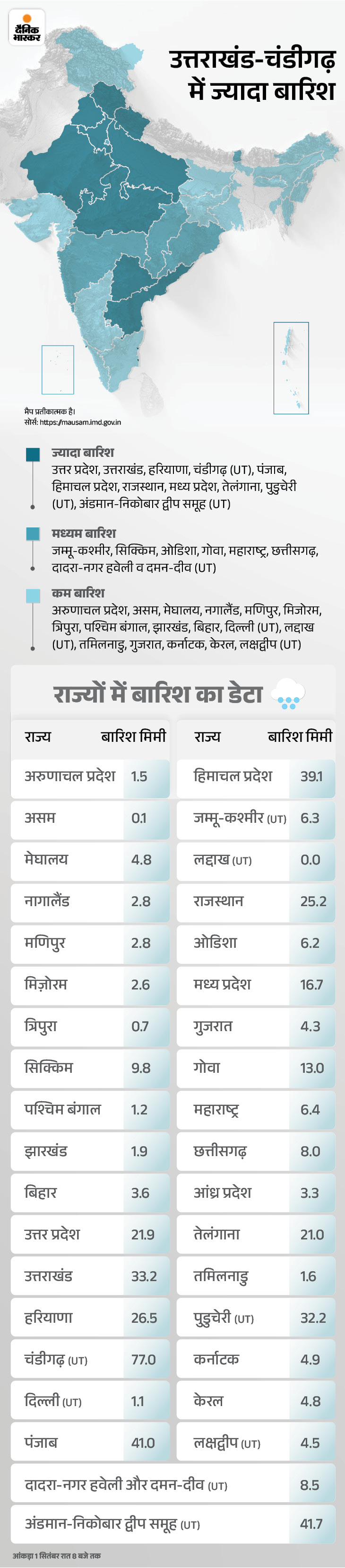 The rain of August this year in Himachal Pradesh has broken 76 years of records. Last month, 68 percent more than normal (256.8 mm) has received rainfall. This is the highest since 1949.