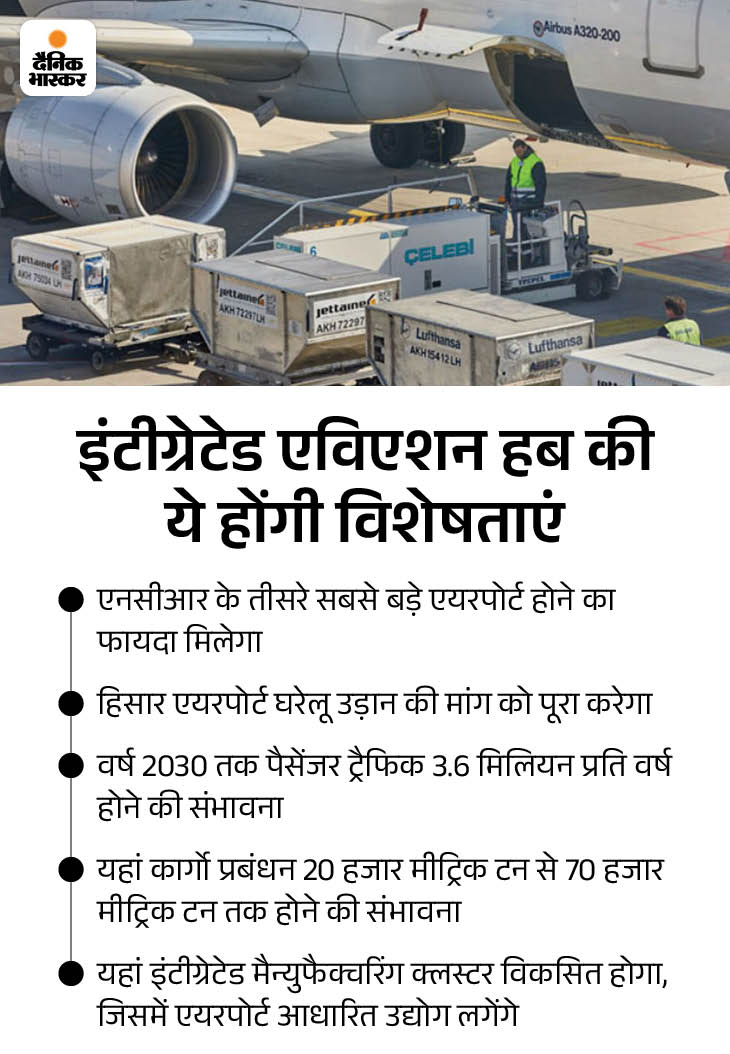 Industry will increase at the dry port of Hisar Airport An industrial cluster is being built under the National Industrial Corridor Development Corporation Limited (NICDC). 4694.46 crore rupees will be spent on this project. The transport industry will increase from the dry port to be built at the airport.