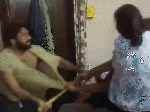 Both of me and the daughters intervened but the Havan had blood on his head. By strangling and hitting my head, my wife bled. He succumbed during treatment.