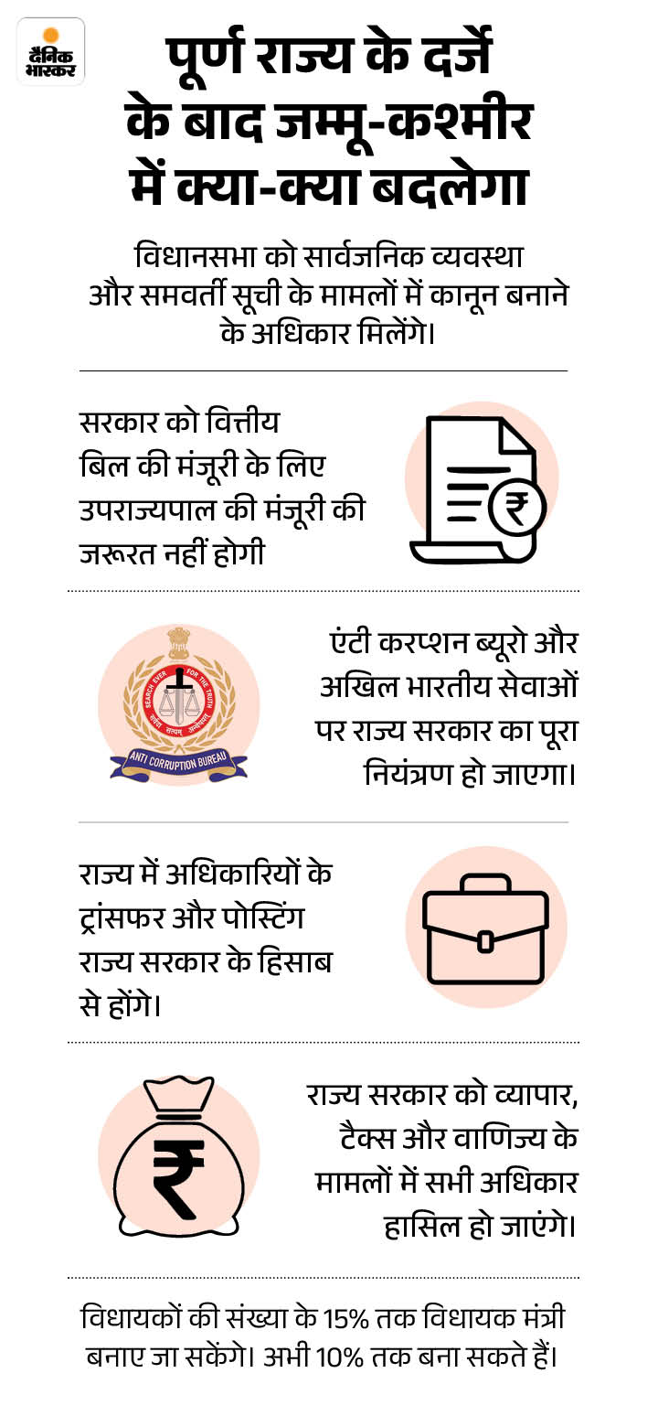 - The proposal will be sent to the Central Government through the Lieutenant Governor. The further decision has to be taken by the Central Government. Only the Central Government can process changes in the Jammu and Kashmir Reorganization Act for the status of a full state.