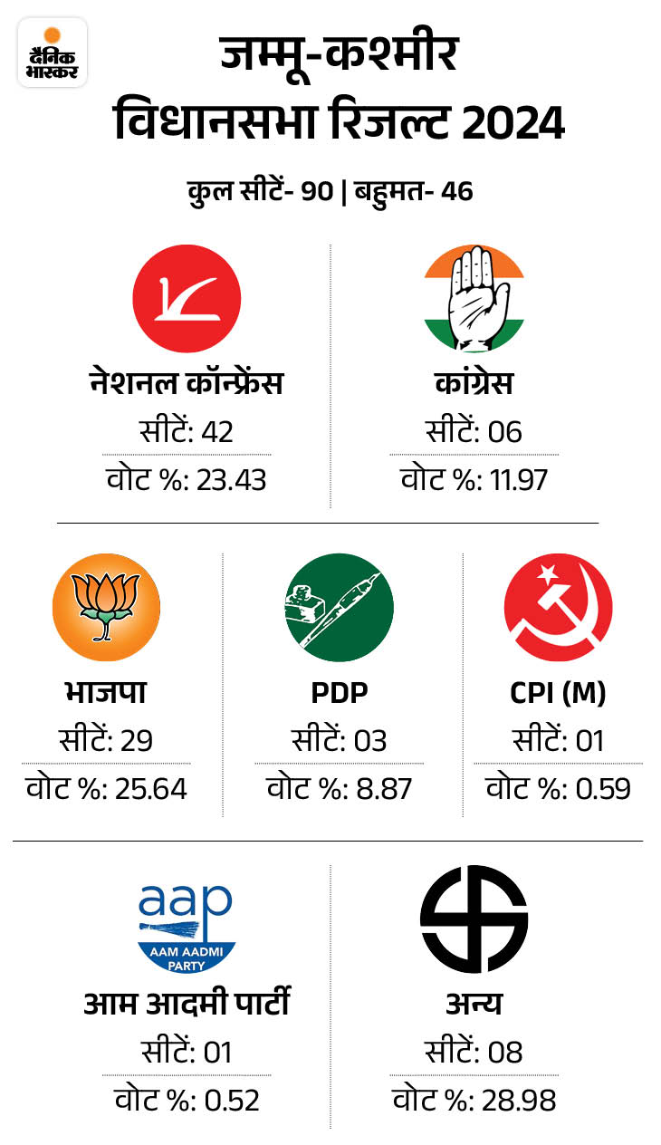 The first assembly elections were held in the state after the abrogation of Article 370 in September 2024. After the abrogation of Article 370, assembly elections were held in the state for the first time last month. The results of the elections held in three phases came on October 8. In this, National Conference (NC) had emerged as the largest party. The party had got 42 seats. NC’s ally Congress won 6 seats and CPI(M) won one seat.
