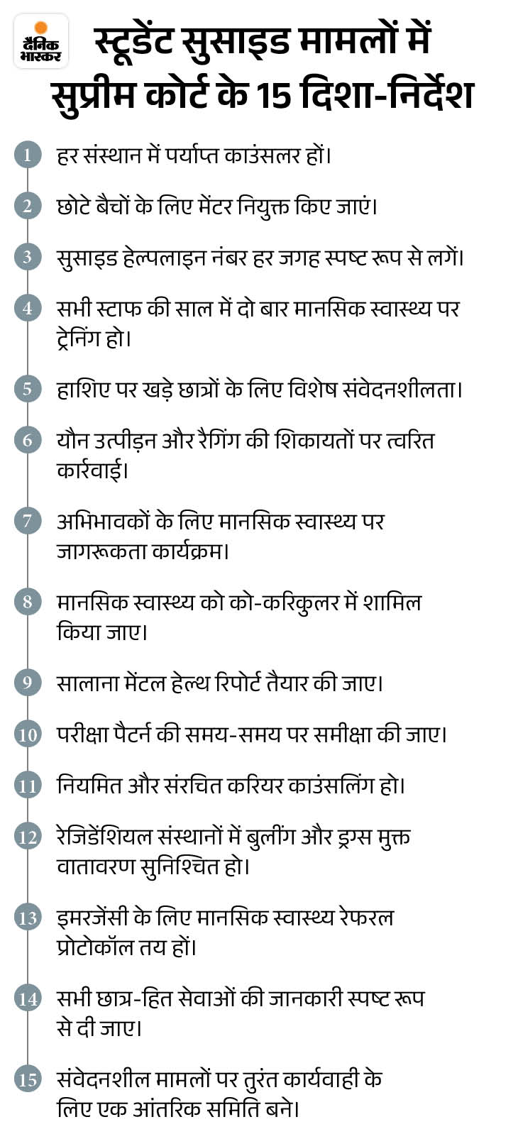 On July 25, the Supreme Court expressed concern over the increasing incidents of student suicide and described it as a failure of the system. The court said that these incidents cannot be ignored.