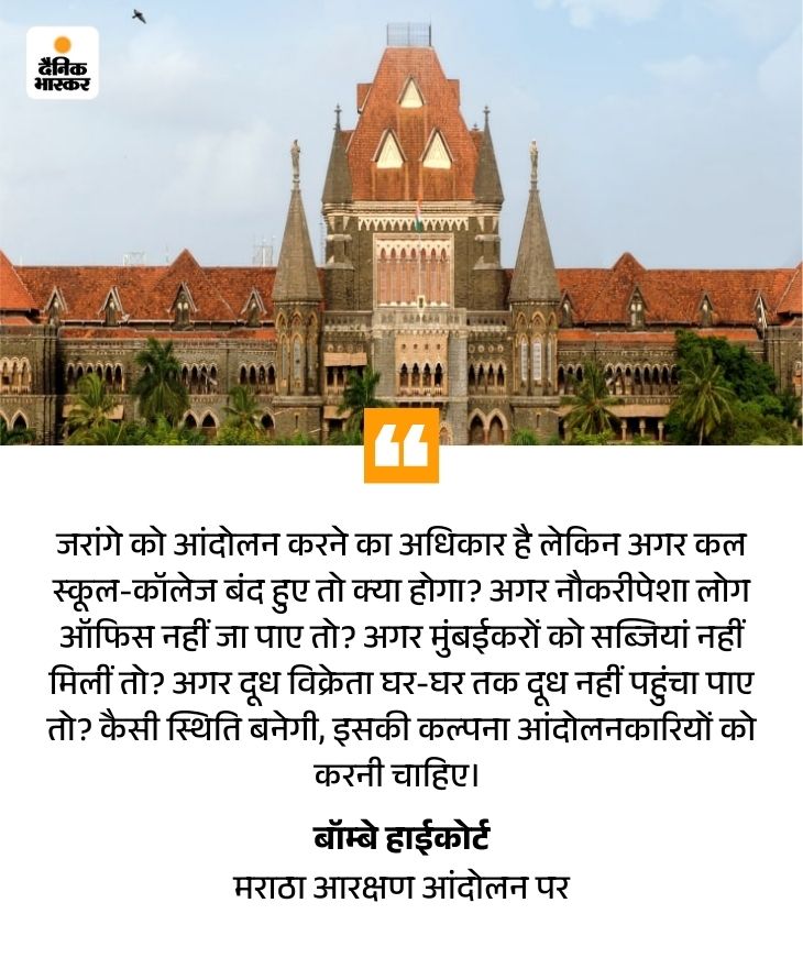 The Maratha reservation movement under the leadership of Manoj Jarang in Maharashtra was heard in the Bombay High Court on Monday. The High Court reprimanded the agitators and ordered that all the roads of Mumbai be vacated by tomorrow afternoon except Azad Maidan.