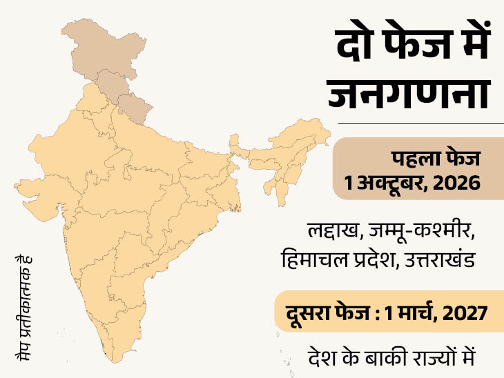Gazette notification of census was released on 16 June The Ministry of Home Affairs has issued a notification for the census on Monday (June 16). The central government will make ethnic in two phases. According to the notification, the first phase will start from 1 October 2026. This includes 4 hill states- Himachal Pradesh, Uttarakhand, Jammu and Kashmir and Ladakh. The second phase will start from 1 March 2027. In this, census will start in the rest of the states of the country.