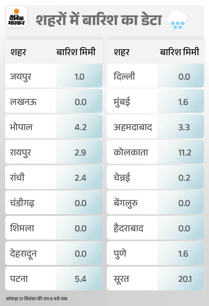 The monsoon has started returning from Rajasthan, Punjab and Gujarat. The rainy season continues due to the returning monsoon in Madhya Pradesh. There will be the next 10 more rain in the state. The monsoon will start returning from MP after 30 September.