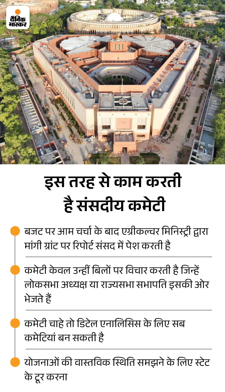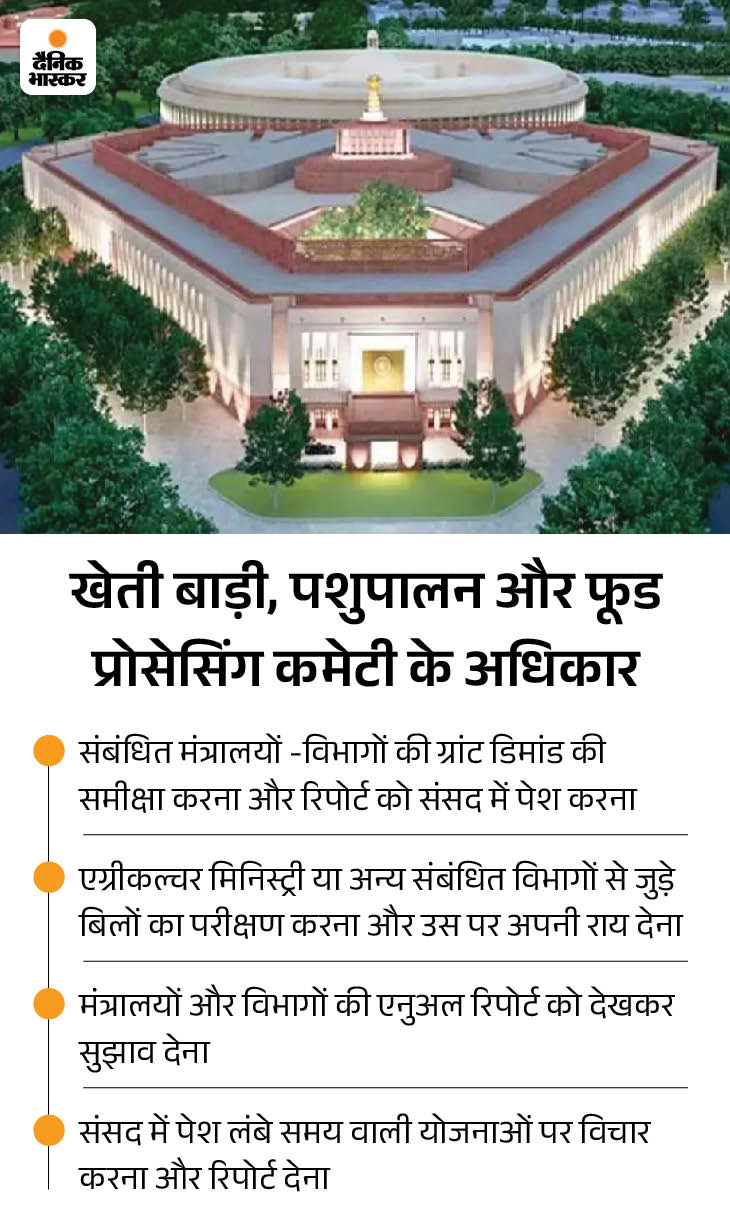 Know how important this committee is The Standing Committee on agriculture, animal husbandry and food processing set up in the Lok Sabha is one of the most important parliamentary committees to monitor the country’s agricultural policies and schemes. This committee gives its recommendations to Parliament by studying the proposals of agriculture, reports of ministries and policy documents brought by the government.