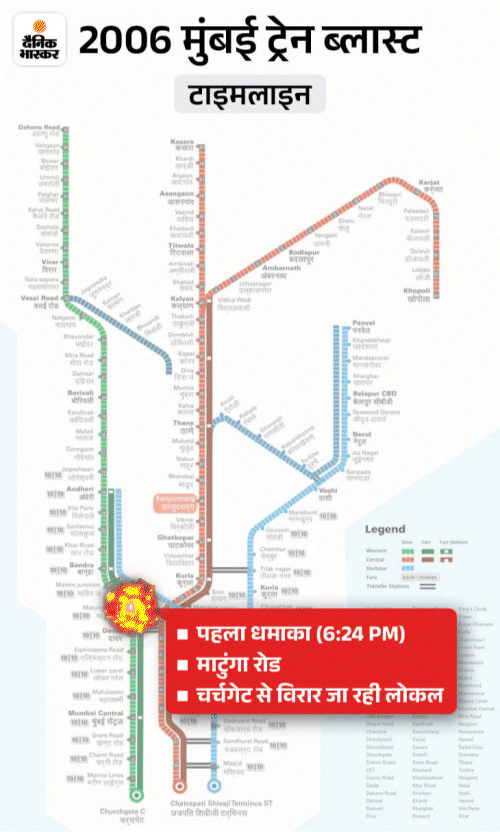 - Around 6:24 pm to 11 minutes, 7 explosions occurred in local trains of Western line. It killed 189 people and injured more than 824.