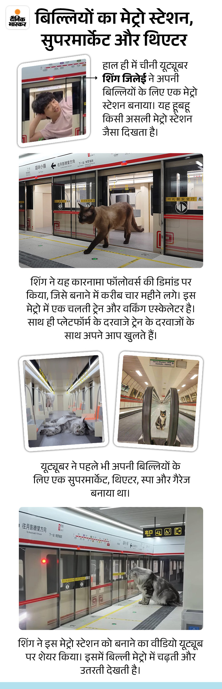 A man made a metro station for cats, which has facilities like real stations. Cats also travel by train in this station. Apart from this, cats also have a special super market and theater. At the same time, scientists have made a plant that will give light like street lights.