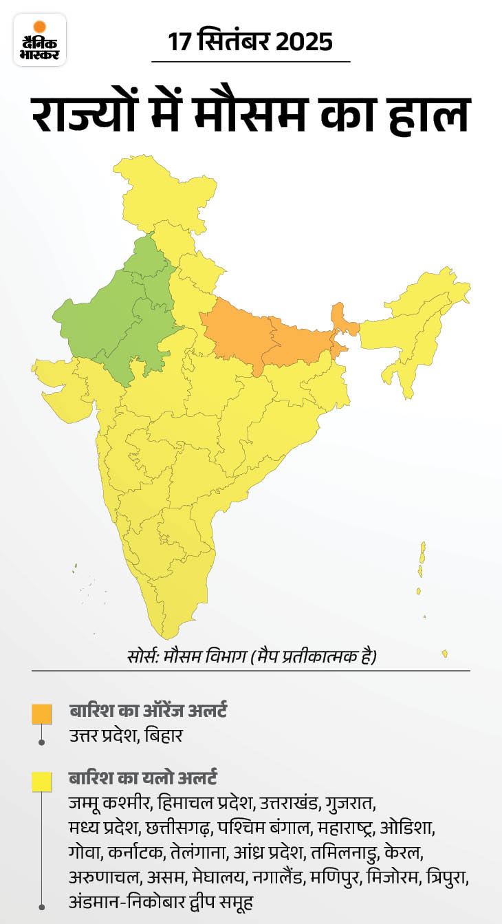 IMD has issued an alert for heavy rains in Uttar Pradesh and Bihar. There is a yellow alert in other states as well. The monsoon is active in the eastern and north-eastern parts of the country, but the return of monsoon has started from Rajasthan, Gujarat and Punjab.