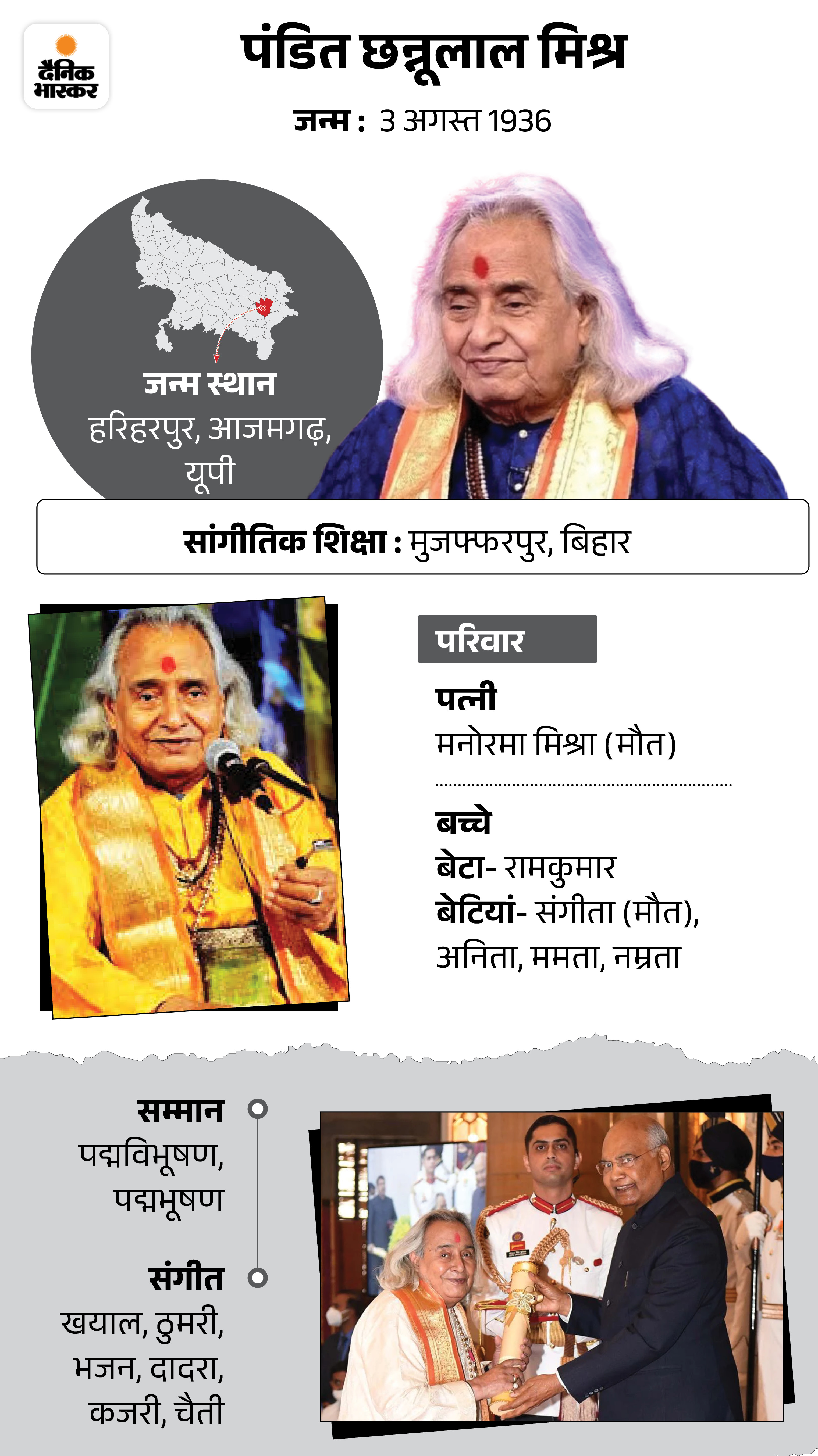 In 4 days, wife and daughter died from Corona Manorama Mishra, wife of Pandit Chhannulal Mishra, died on 26 April 2021. She was infected Korona and was admitted to a private hospital in Varanasi. After this, on 29 April 2021, elder daughter Sangeeta Mishra died in a private hospital in Madagin. Sangeeta was also infected Korona and was hospitalized for 7 days. Chhannulal alleged negligence in treatment.