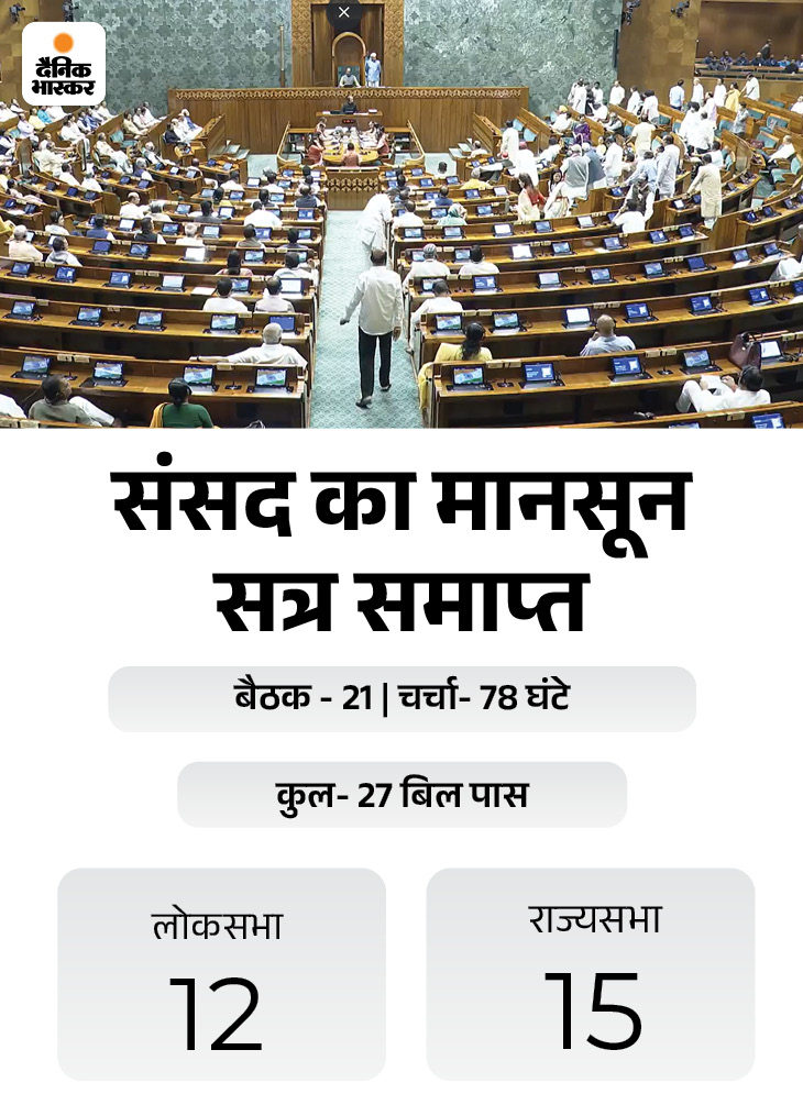 Parliament 2025 motions; Online Gaming Bill – Operation Sindoor Bihar Sir | BJP Congress | Parliament’s monsoon session ends, total 21 meetings: 16 hours discussion on Operation Sindoor, Dhankar’s resignation in the middle session, uproar on Bihar SIR