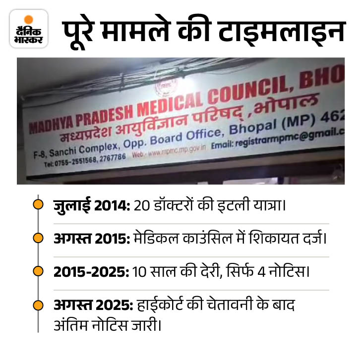 Foreign trip 10 years ago, till date only notice The roots of this entire matter are 10 years old. Vikas Tiwari, a whistleblower and social activist from Raipur, had filed a written complaint with the Madhya Pradesh Medical Council on August 28, 2015. In the complaint, he had claimed with evidence that a total of 28 private doctors from Madhya Pradesh and Chhattisgarh had gone on a trip to the beautiful cities of Venice and Portorož in Italy from July 13 to July 21, 2014.