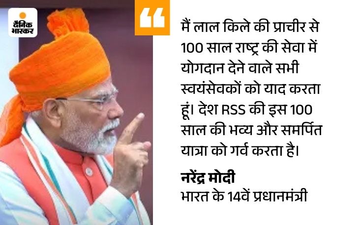 Prime Minister Narendra Modi said in the 79th Independence Day address- Today I want to mention proudly that Rashtriya Swayamsevak Sangh (RSS) was born 100 years ago. The service of a 100 -year nation is very proud.