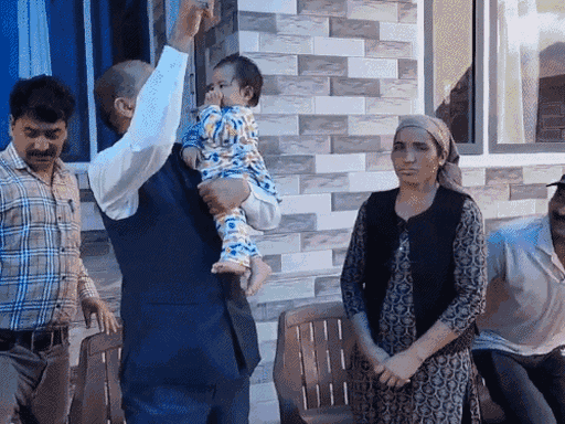 A 1 -year -old girl Nitika Kumari and PM Modi in the lap of Bua Kirana Devi.
