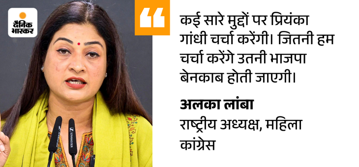 Women Congress National President Alka Lamba said that Priyanka Gandhi will reach Sadaqat Ashram. Women are coming from every corner of the state about this. Efforts have been made to include women of every class in this dialogue.