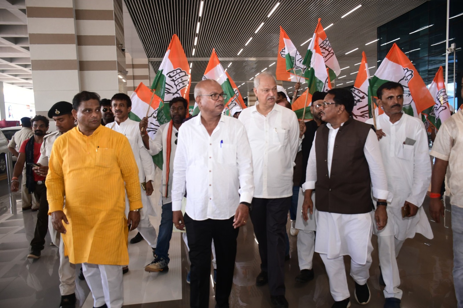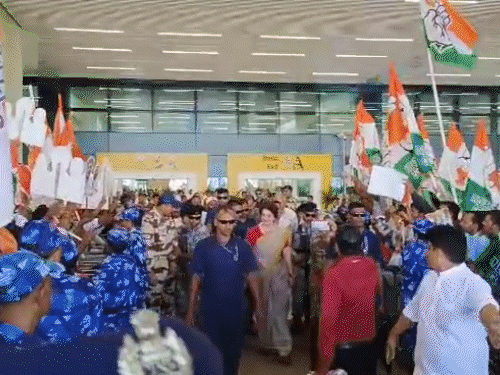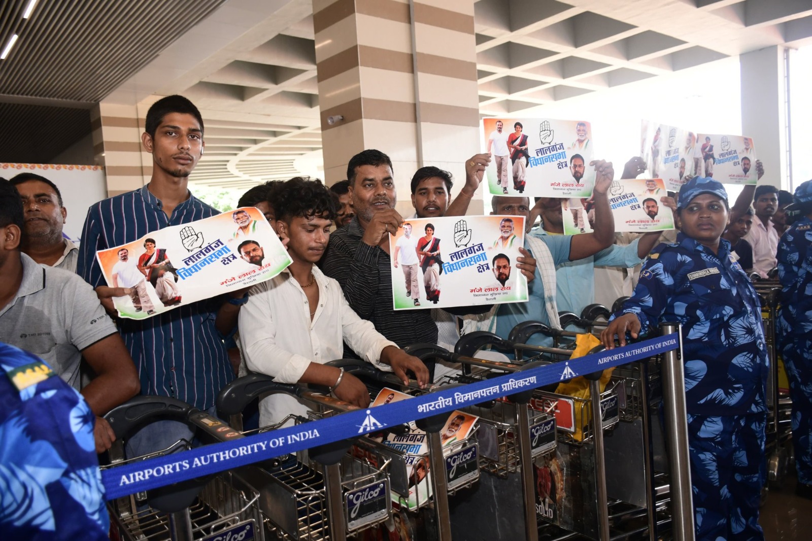 Priyanka Gandhi is going to reach Patna in a while. Congress state president Rajesh Ram and leader Shaki Ahmed reached the Airport to receive them. During this time, crowds of Congress supporters gathered at the airport.